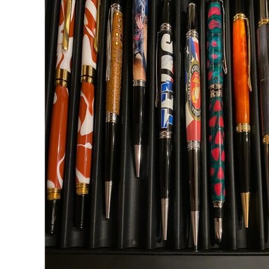 Diversity of pens with all different colors and themes.