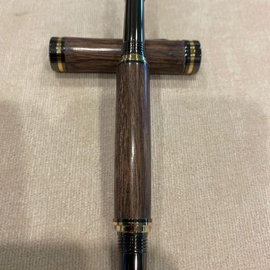 Chrome/ gold Fountain pen with walnut body and top