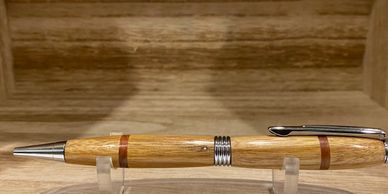 Chrome trimline twist pen with canary- and red wood body